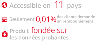 Si vous n'êtes pas satisfait avec l'efficacité de notre pilule, nous vous rembourserons entièrement les dépenses. Plus d'informations sur la garantie